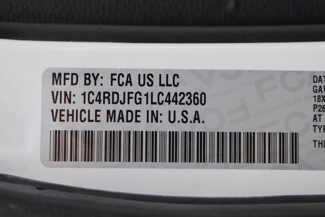 | Miles: 69,183 | | Stock Number: 14135G | | VIN: 1C4RDJFG1LC442360 | | Fuel Type: Gasoline | | Cylinders: 3.6 L | | Engine Desc: V6 F DOHC 24V / ALL WHEEL DRIVE |