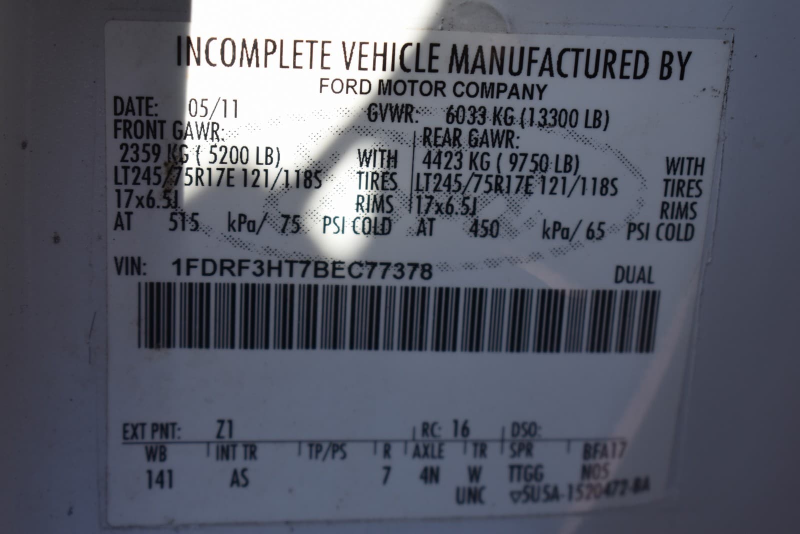 | Miles: 45,436 | | Stock Number: 14171G | | VIN: 1FDRF3HT7BEC77378 | | Fuel Type: Diesel | | Cylinders: 6.7 L | | Engine Desc: V8 F OHV 32V DIESEL / 4 WHEEL DRIVE |